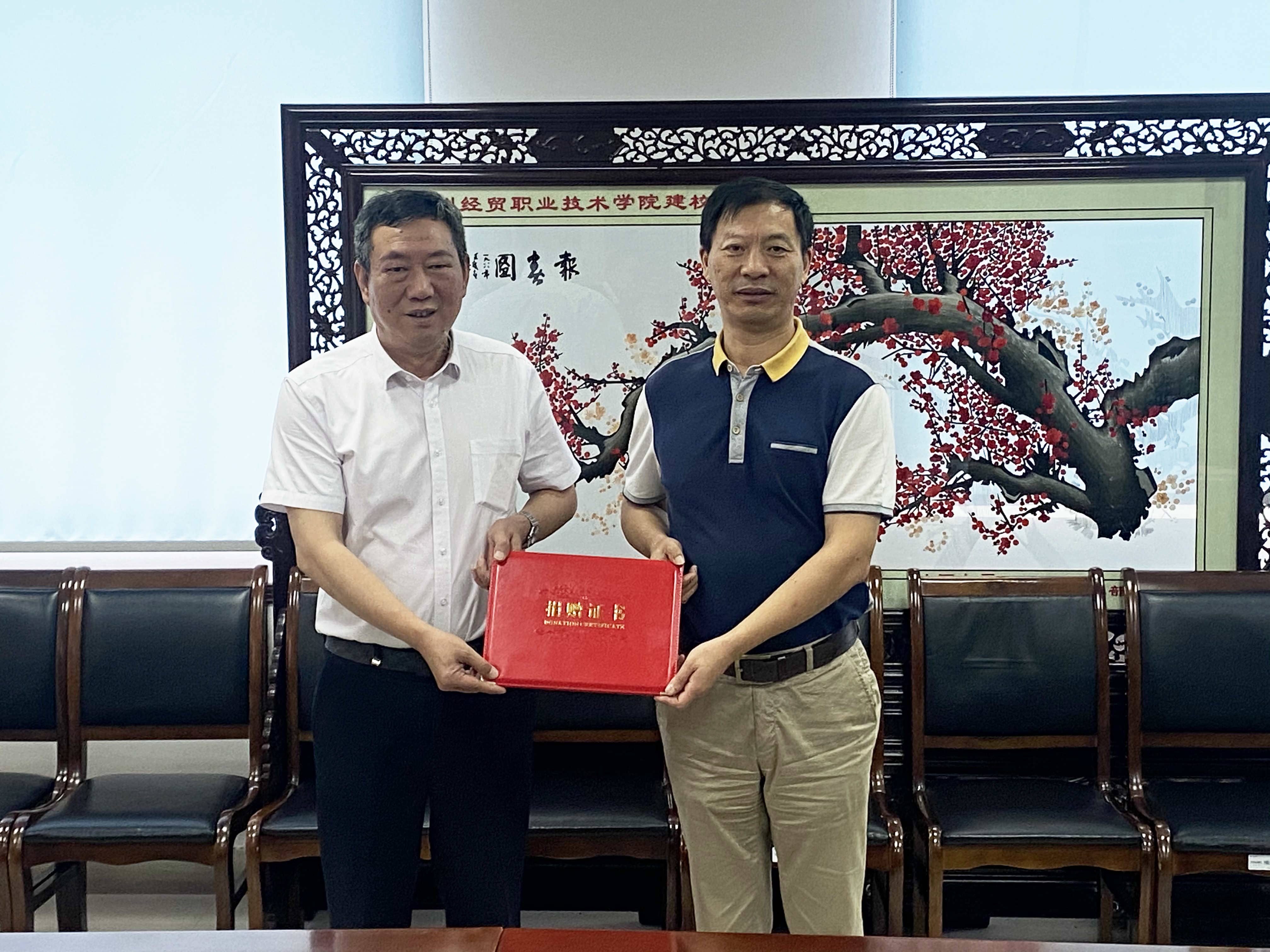 最后,雙方進行了捐贈物資的交接,蘇州經(jīng)貿(mào)職業(yè)技術學院副院長沈文其向企業(yè)頒發(fā)了捐贈證書,并合影留念。
