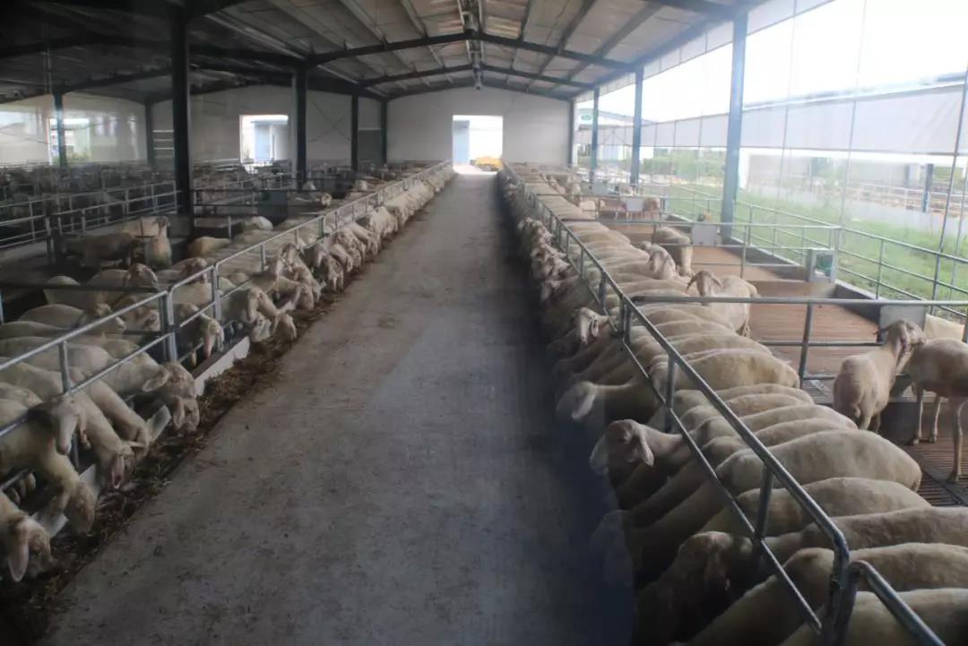 卞新民教授等領(lǐng)導(dǎo)在現(xiàn)代化羊舍內(nèi)考察羊的飼養(yǎng)情況