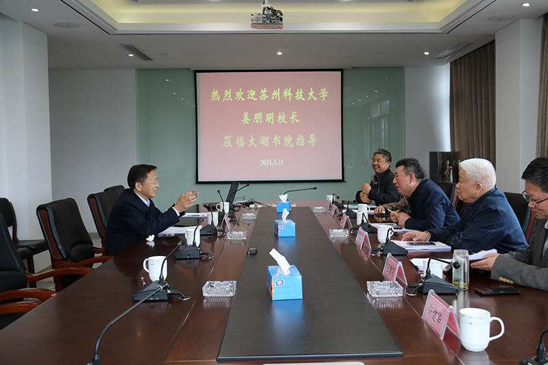 3月31日上午,蘇州科技大學校長姜朋明到訪江蘇省研究生工作站太湖書院。太湖書院山長丘亮輝,江蘇乾寶科技發(fā)展集團執(zhí)行總裁、太湖書院秘書長王翼寧,江蘇省研究生工作站的研究生導師負責人、太湖書院執(zhí)行院長王建明,常務副院長、江蘇省研究生工作站的書院負責人丘東等人熱情接待并參加座談。