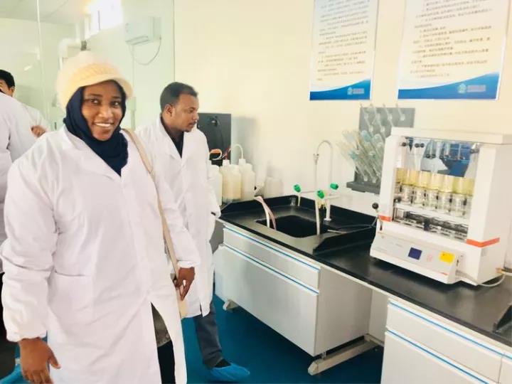 蘇丹公派的學(xué)者與揚州大學(xué)李傭軍等教授一行企業(yè)領(lǐng)導(dǎo)和養(yǎng)殖技術(shù)人員的陪同下進行實地調(diào)研。