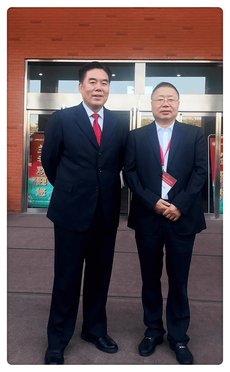 中國畜牧業(yè)協(xié)會會長李希榮(左)與乾寶投資集團(tuán)董事長王躍程(右)合影留念