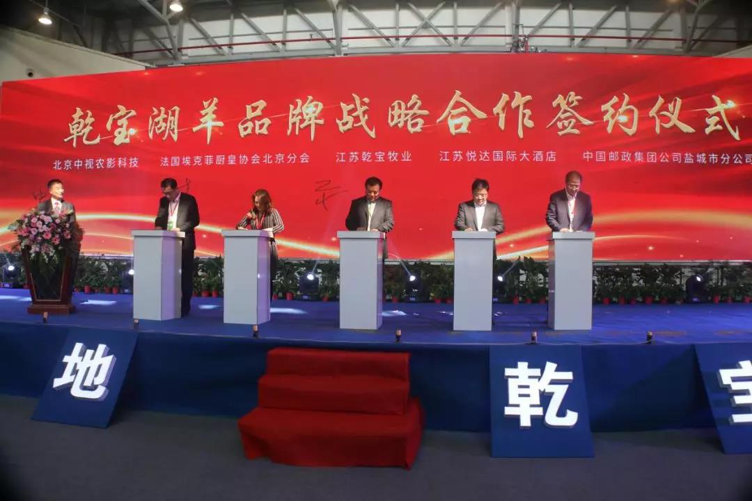 為深入挖掘乾寶湖羊文化、進(jìn)一步研發(fā)和打造乾寶湖羊羊肉產(chǎn)品、不斷提升乾寶湖羊品牌在國(guó)內(nèi)外消費(fèi)市場(chǎng)中的影響力,由江蘇乾寶牧業(yè)有限公司與北京中視農(nóng)影科技有限公司、法國(guó)??朔茝N皇協(xié)會(huì)北京分會(huì)、悅達(dá)國(guó)際大酒店、中國(guó)郵政集團(tuán)公司鹽城分公司共同簽署戰(zhàn)略協(xié)議。