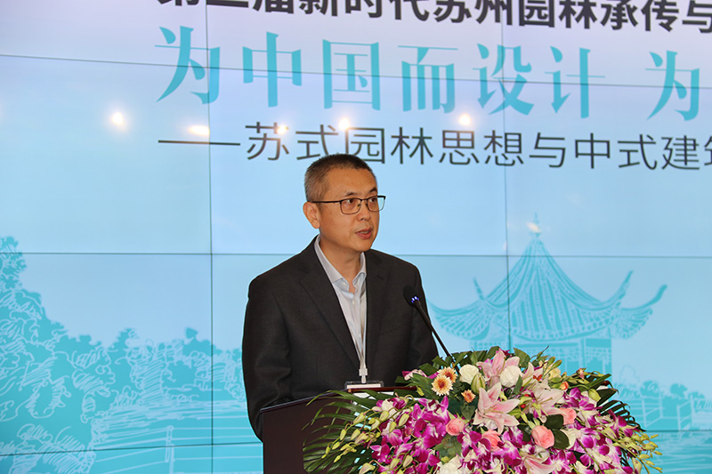 南京農(nóng)業(yè)大學(xué)風(fēng)景園林學(xué)科負責人丁紹剛對江南園林數(shù)字技術(shù)的開拓性研究,蘇州香山法原建筑設(shè)計院院長盧勇從中國人思維形成的建筑藝術(shù)風(fēng)格角度,提出了要勇于用中國人思想實現(xiàn)為未來而設(shè)計的主張。蘇州大學(xué)周玉明和曹林娣教授,蘇州科技大學(xué)盛承懋等專家學(xué)者,圍繞會議主題分別從向善化思維、園林景境美和留園變遷史等不同維度作了精彩的演講,為蘇州園林如何為“中國而設(shè)計、為未來而設(shè)計”表達了諸多令人耳目一新的真知灼見。