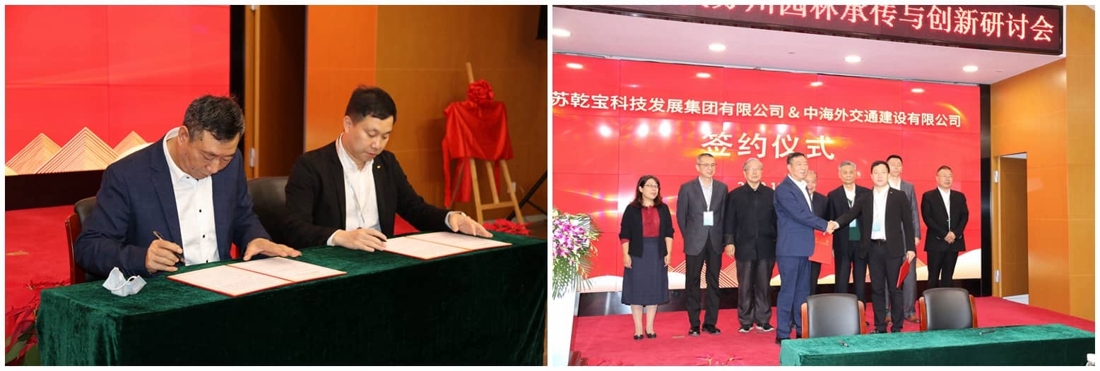 為切實推進新時代蘇州園林的創(chuàng)新實踐,促進園林產(chǎn)業(yè)走向世界,開幕式上由中海外交通建設(shè)有限公司和江蘇乾寶科技發(fā)展集團有限公司共同簽訂了“園林產(chǎn)業(yè)‘一帶一路’戰(zhàn)略合作協(xié)議”。