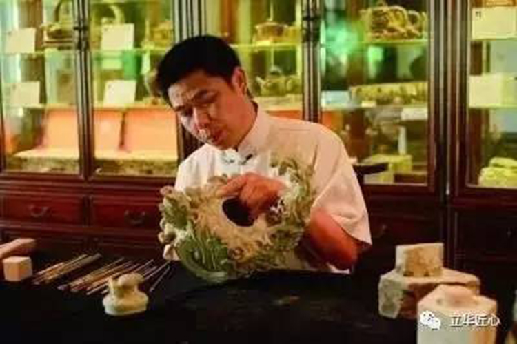 ?????? 蔡云娣自幼喜愛美術(shù),在祖父及前輩的雕刻藝術(shù)熏陶下,執(zhí)著地追求石雕藝術(shù),在繼承祖父雕刻中國(guó)四大名硯的基礎(chǔ)上,于80年代初創(chuàng)立了石壺雕刻的新門類,辛勤耕耘了二十多年,形成了自己獨(dú)特的藝術(shù)風(fēng)格。