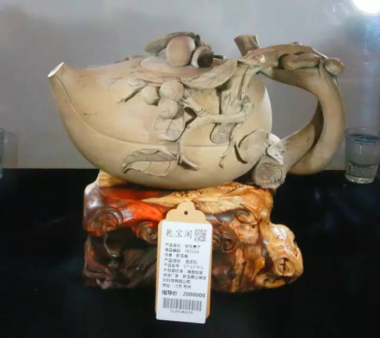 ?????? 送給威廉王子的《早生貴子》澄泥石壺,高12厘米,長(zhǎng)18厘米,寬15厘米,造型生動(dòng)飽滿。在創(chuàng)作中還特別設(shè)計(jì)了中國(guó)傳統(tǒng)婚禮中最常見的紅棗、花生、桂圓三種吉祥物,寓意“早生貴子”。