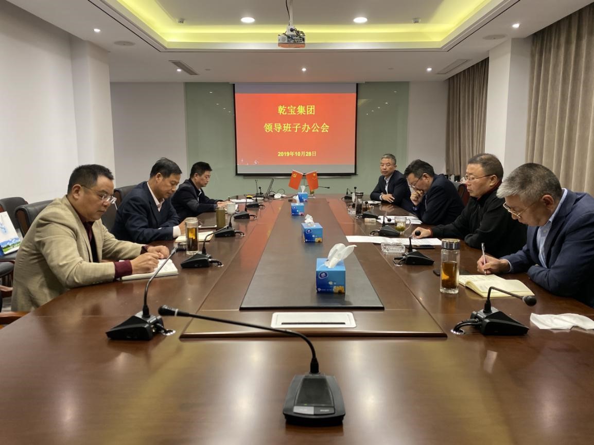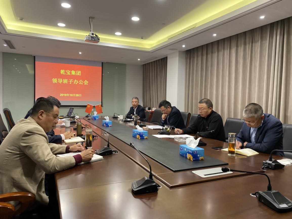 ? ? ? ?2019年10月28日,乾寶集團(tuán)在總部召開領(lǐng)導(dǎo)班子辦公會。董事長王躍程、副董事長朱波、執(zhí)行總裁王翼寧、副總裁許建華、副總裁孟憲考、天堂美公司總經(jīng)理馬向農(nóng)、乾寶生物科技公司總經(jīng)理丘東、辦公室主任陳建飛參加會議。