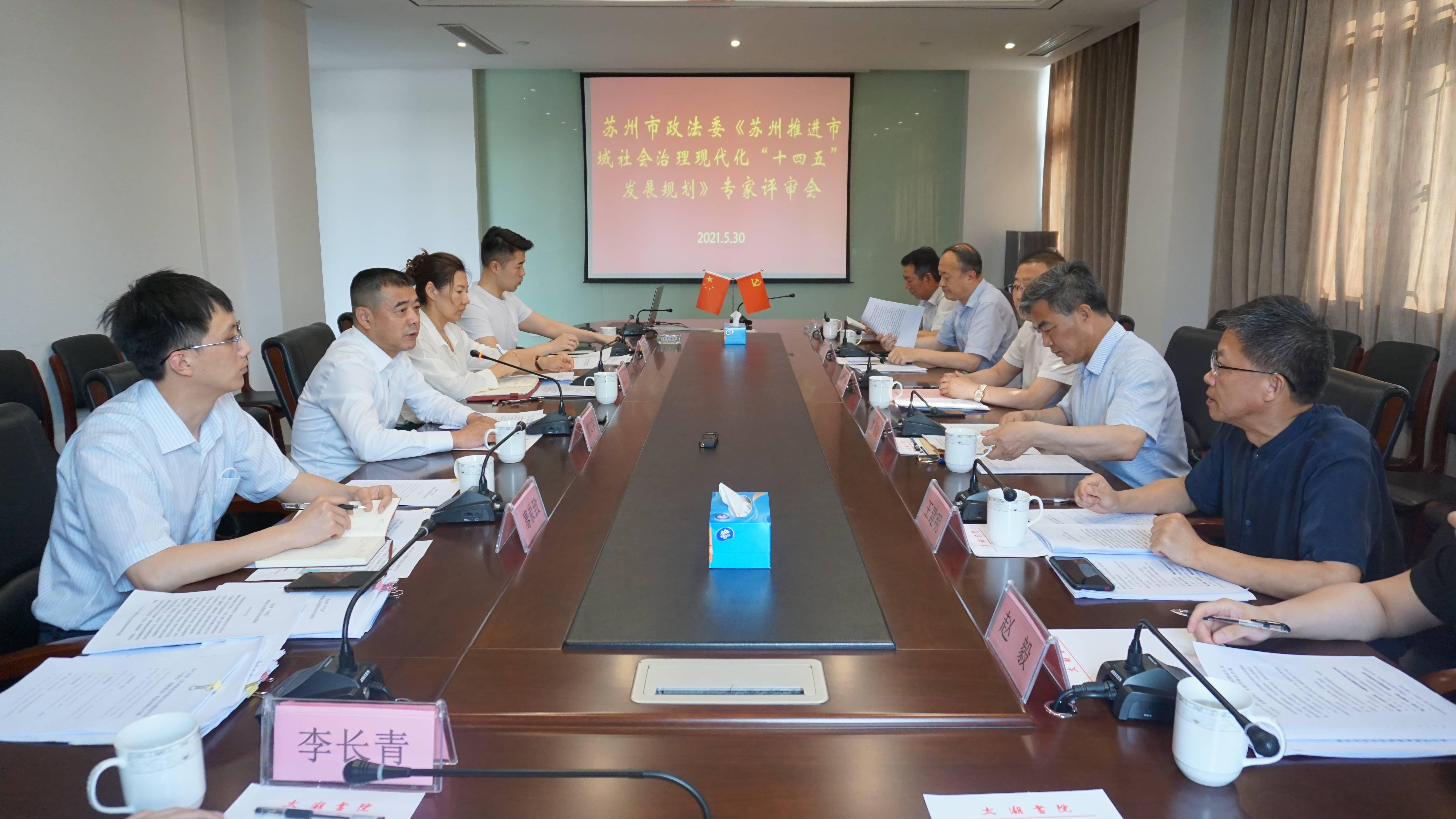 由蘇州市委政法委主持承擔的《蘇州推進市域社會治理現(xiàn)代化“十四五”發(fā)展規(guī)劃》課題(以下簡稱《規(guī)劃》),通過深入的前期調(diào)研、專家座談、報告撰寫、并經(jīng)廣泛征求意見和數(shù)輪修改完善,最終形成課題研究報告。 5月30日下午,蘇州市委政法委在太湖書院組織專家召開《規(guī)劃》評審會議。