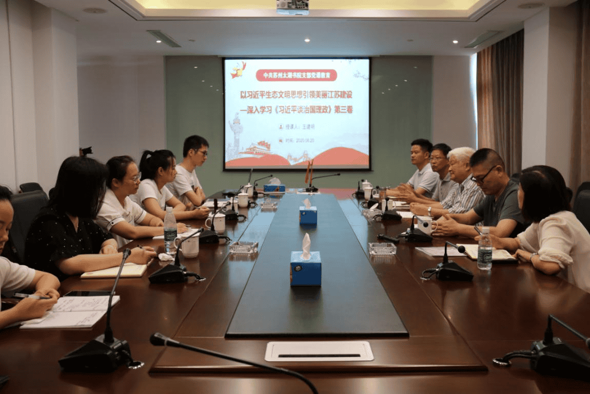 ??2020年8月20日,太湖書院黨支部開展“以習 近平生態(tài)文明思想引領美麗江蘇建設——深入學習《習 近平治國理政》第三卷”為主題的黨課教育。本次黨課由支部黨員、太湖書院執(zhí)行院長王建明教授主講,太湖書院全體黨員和入黨積極分子參加了此次學習活動。